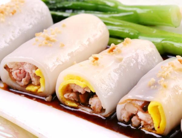 这幢充满香港人集体回忆的旧建筑,其地铺在07年被改建为「湾仔民间生活馆」。该馆由圣雅各布福群会与一群热心的小区人士开办,以保育及推广湾仔的地区文化特色为目的,馆内展品全部由湾仔的街坊捐赠,珍贵之余亦充满人情味。肠粉。将做好的米浆舀一小勺到特制的托盘中,放入抽屉式蒸架中蒸熟,取出用竹片划成矩形,在上面加入预先炒好的肉馅以后卷起来就完成了。品尝时,配以生抽或者辣酱加花生油,味道更佳。