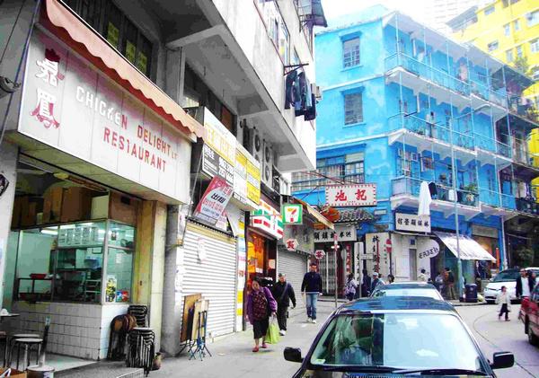 菜全由自己选择,可选择的有牛腩、猪红、猪皮、萝卜以及各种丸类及蔬菜等等,一碗美味的车仔面可说是由自己选择出来的,再加上牛腩汁、沙爹汁或咖喱汁,口味正任由自己调配。香港的朋友推荐了小驴er 一家街边小店:湾仔石水渠街“蓝屋”旁,名叫“嘉凤”。在这里吃完车仔面,顺道到旁边的“蓝屋”逛逛。