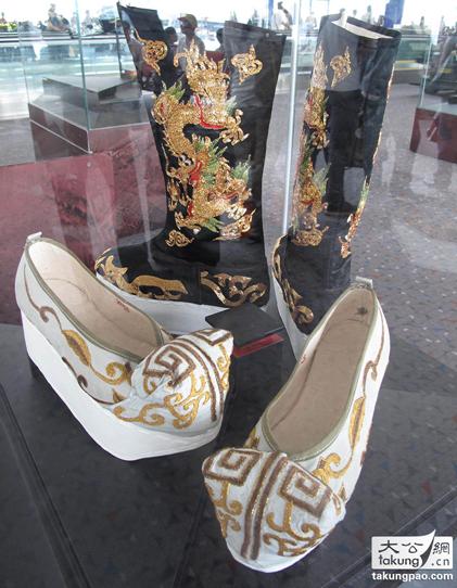 大公网5月27日讯 在香港国际机场候机室展出的一批珍贵舞台戏服和道具吸引旅客欣赏。源於广东广西地区的有着三百多年历史的粤剧 ,是集文学历史、音乐舞蹈、美术武术於一身的综合表演艺术,细腻的锦秀戏服与舞台美术道具等,更是为营造舞台效果和情景气氛。这次展览的戏服、头盔、靴鞋、头饰等,旨在让世界各地的旅客了解传统粤剧文化。/中新社