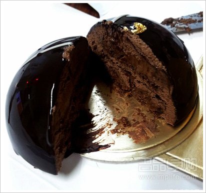 外面朱古力酱, 内里是浓浓的朱古力mousse, 当中夹杂了朱古力脆脆, 吃起来有点咬感.