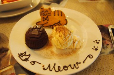 这里的食物以甜品为主打,有各式猫咪形状的甜点和蛋糕。也可以用午餐和晚餐,以西式为主要菜式。晚餐消费大概在100-150HKD/人。