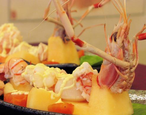 私房菜价钱以每位人客计算,因应季节调配食材,尹师傅為炎夏设计了消暑前菜与冻糕甜品。其中「张牙舞爪」就是以纽西兰龙虾、北海道元贝、虾球、哈蜜瓜、木瓜、比目鱼和子薑等等,再配上沙律汁而成,摆设成生动的龙虾形态,炎夏看的吃的都开胃。