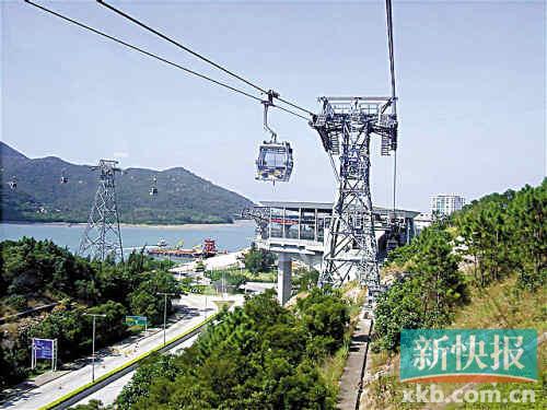 昂坪缆车连接大屿山东涌市中心及昂坪,全长5.7公里,采用安全可靠的双缆索缆车系统,除了舒适宁静的标准车厢,还特设透明车底的水晶车,让无际碧海和翠绿山峦在你脚下震撼呈现。旅客沿途可远眺辽阔的大海,亦可俯瞰翠绿的北大屿山郊野公园,从繁华闹市的景象进入宁谧和谐的大自然景致。