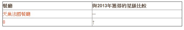 一星餐厅数目比去年增加两间至七间,誉珑轩、皇雀印度餐厅、大厨为新摘星食店。