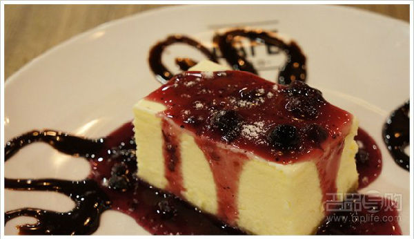 蛋糕质感结实,饼底有点湿润,如果干身点更好,再配上蓝莓酱,味道简单而美味。
