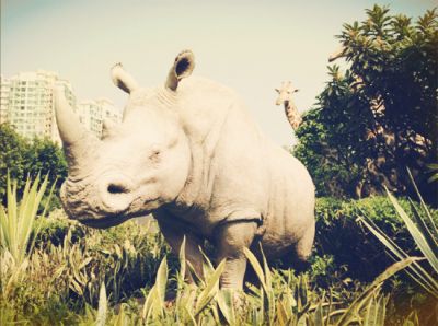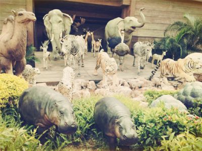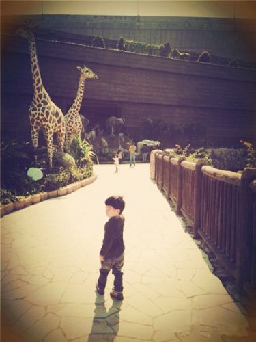 在巨大的挪亚方舟前,显得特别渺小的父子两~~为了避开人流,我们先去了方舟花园。这个园内有67对稀有及濒危动物的雕塑,雕塑与动物的实际大小相同,造型栩栩如生。