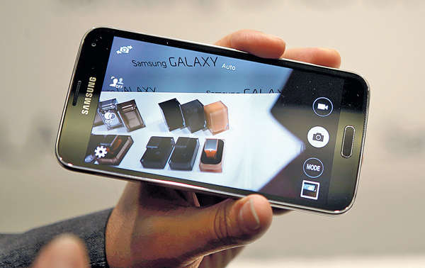 三星在西班牙流动通讯世界大会上发布的S5,有黑、白、蓝、金四色,採用了5.1吋全高清Super AMOLED屏幕,而相机功能亦有跃进,具混合式对焦能力,最快0.3秒就完成对焦;S5亦首度加入防水防尘功能。