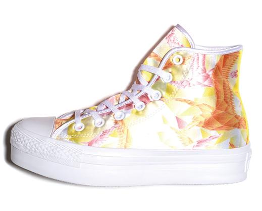 「GEOMETRIC」是CONVERSE最新推出的CHUCK TAYLOR ALL STAR别注系列,创作团队特别引用色彩学及几何图案带来的强烈视觉效果,将两者结合并套用在CHUCK TAYLOR ALL STAR及ALL STAR PLATFORM两款女生球鞋,打造出满载春天气息的作品。(SOGO)