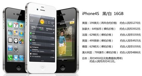 目前iPhone4S这款手机在首发七个国家的售价已经曝光,最便宜的地区为加拿大,裸机价格约为3932元人民币。遗憾的是中国无论是香港还是大陆都没有出现在苹果iPhone4S的前两批上市国家当中,在国内要想见到iPhone4S的行货版本预计要等到今年年底,售价预计与之前的iPhone4持平。