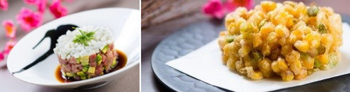 江户日本料理的主理大厨拥有20多年丰富经验,其手艺及创意非凡,如香港人觉得重口味但健康有益的「纳豆」,出自他手便摇身一变成特色美食,他原创的爆弹($160)选用多款新鲜鱼生食材及味道清新的山芋(又作淮山),加入自制酱汁及日本鲜蛋黄,以清新食材拌随纳豆再以紫菜包起来,吃的时候香味及口感丰富得令人难以解释,犹如爆弹一样将滋味在口腔中爆发。另一加入山芋制作的金枪鱼牛油果他他沙律($188),每款材料细心地切成幼粒,加上特调酱汁令刺身沙律味道更清新鲜甜。炸玉米绿豆饼($118),选用产自北海道的新鲜玉米,原条切粒再加入茶豆炸成菜饼,每粒清甜的玉米炸熟后保持原味,配上天然风味的岩盐吃起来更原汁原味。另四季皆宜的甜番薯,同样以脆炸形式烹调,先蒸后炸方法确保每条番薯保留内里软绵口感,新鲜甜薯香味更有增无减。