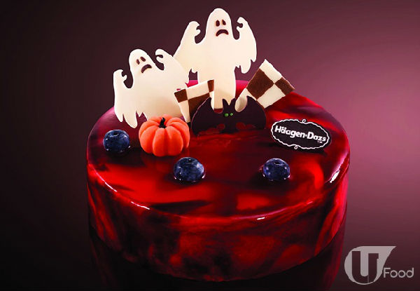 以红桑子酱及朱古力酱营造惊吓效果,再缀以幽灵、蝙蝠及南瓜朱古力作装饰,备有三种不同的尺寸,是各式各样的万圣节派对的不二之选。