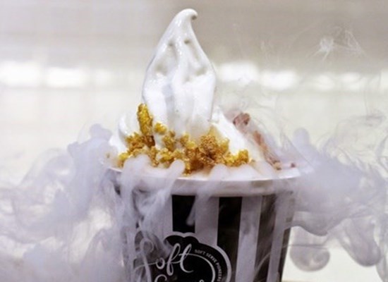 因一张冒烟雪糕照红遍社交网络,花心思在特制雪糕杯下层放乾冰,让雪糕不易溶化之外,也营造烟雾瀰漫的效果。软雪糕有北海道3.6牛奶和自家制cereal口味,topping除近期大热的蜂巢,还有煎香的烟肉干,与雪糕同吃既甜且咸,脆滑兼有。会员yan~*形容组合充满新意,加了乾冰更显梦幻。另还有以Moët调制的18+香檳雪糕,味道浓醇,酒徒可别错过。