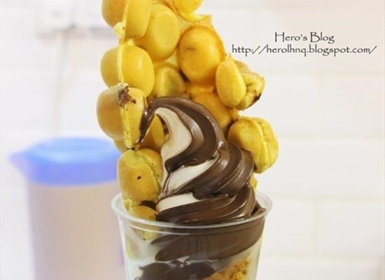 主理人从法国蓝带厨艺学校学成归来,除自创以火腿芝士、呍呢嗱米饭布丁作馅的鸡蛋仔外,又将之和芭菲凑在一块。像Night Wolf便是以低脂扭纹雪糕搭上Brownie 朱古力碎鸡蛋仔和焦糖香蕉雪糕、牛油酥等。会员hero生活旅~*评鸡蛋仔不太脆但富蛋香,Brownie混在内更添甜香。Red Odd内藏分子烟燻雪糕,又以白朱古力条扮饮管,意念搞鬼,卖相夺目。