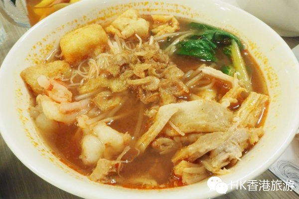 最后吃的葛尼,用上油面和米粉,肉类材料是五香猪肉加上虾汤。这个葛尼用上油面和米粉,其实就跟叻沙是如出一辙,油面和米粉的配合还可以,五香猪肉不算特出,反倒是虾肉跟虾汤比较出色,虾肉弹性有鲜味,虾汤也带浓浓的虾味,应该用了不少虾壳去做出来。