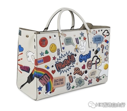 2015-02-25 微信红包微币天天送,关注微信号: hkziyouxing (长按左边红色字复制)获取福利和最新香港购物优惠折扣信息女人手袋愈来愈多花款,除了有愈见女人味的简约 elegance 款式外,亦有很多充满玩味的袋款推出,让女生们可以时而优雅大方,另一面又可以佻皮可爱。来自英国的 ANYA HINDMARCH,袋饰设计一向都创意十足,不说可能你已忘记,当年一个印有 " I'm not a plastic bag" 的帆布tote bag一出,旋即风魔全球,每个女人都想要一个限量的 " I'm not a plastic bag" tote bag。