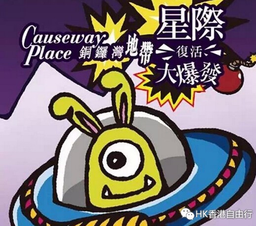 4.外星人入侵铜锣湾 铜锣湾地带被外星人入侵啦!这个复活节一班鬼马外星人来铜锣湾星际大战咯!不仅有主题展,在任何商户消费满HK$600或在一楼及二楼商户合共消费满HK$400,即可免费换领手机鱼眼镜头一只哦!