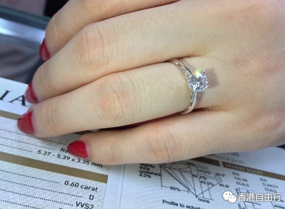 第二天一早去买闪闪,60分,D色,VVS2,3EX 原本我想买个F色VS2的,反正钻戒又不天天戴,但是老公不愿意我手伸出去比别人黄,坚持买D色这颗,感动~~