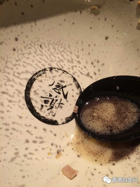 2人买单HKD196+服务费19.6=HKD215.6很是舒心的一餐,还有吃干净后的碗底会出现“感谢”哦,大家一定要吃光光!