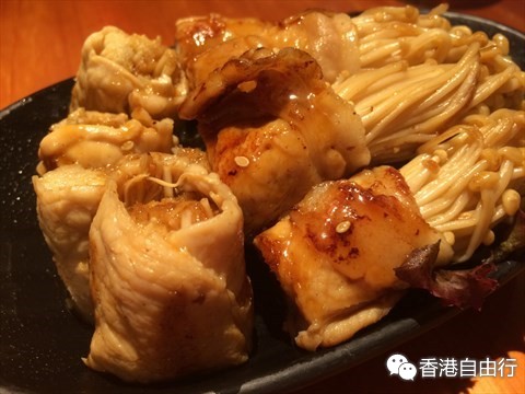 纯情猪菇力卷——HKD38,这款小吃就是金菇肥牛卷的变相,用了猪肉来卷金针菇,口味不错,就是金针菇有些太过扎实,咬不开。