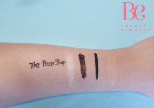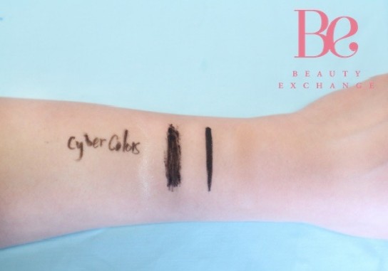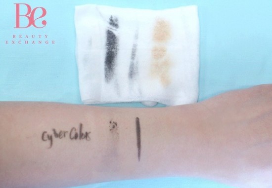小编在手上分别画上平日会使用的化妆品:闪粉眼影、防水睫毛膏、防水眼线液以及粉底液。