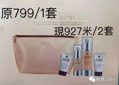 2016-02-17 微信红包微币天天送,关注微信号: hkziyouxing (长按左边红色字复制)获取福利和最新香港购物优惠折扣信息Suisse Programme优惠套装报价