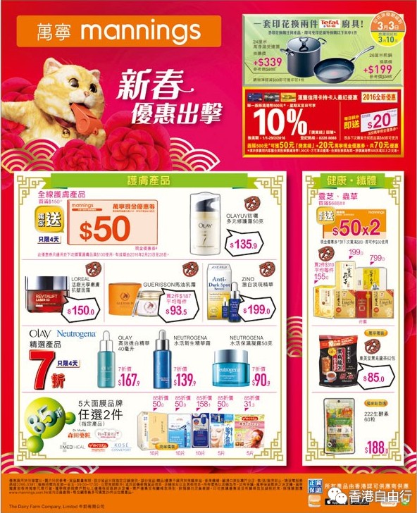 香港打折:万宁最新店内购物优惠(至16年2月22日)