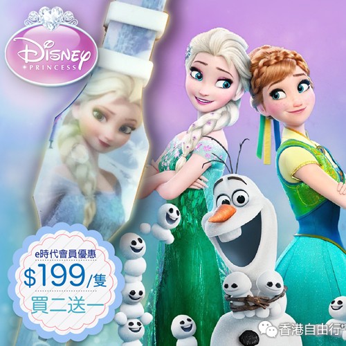 2016-02-23 微信红包微币天天送,关注微信号: hkziyouxing (长按左边红色字复制)获取福利和最新香港购物优惠折扣信息迪士尼大热电影冰雪奇缘角色来到e时代!多款迪士尼卡通手表限时优惠价$199/隻,更有买二送一优惠。