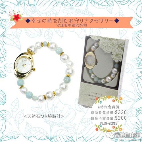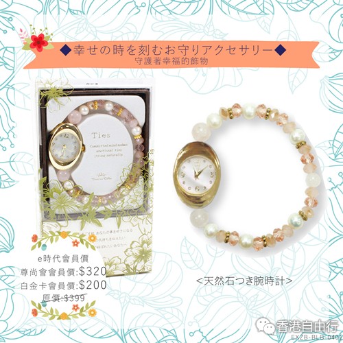 2016-02-24 微信红包微币天天送,关注微信号: hkziyouxing (长按左边红色字复制)获取福利和最新香港购物优惠折扣信息TIARA MS DOLCE是日本天然石饰物手表,包装精美,每款饰物手表配上不同顏色的天然石,代表著不同的祝福,是送给恋人,朋友最佳礼物。