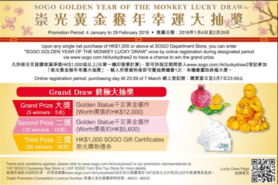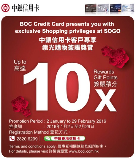 香港打折:sogo崇光百货尖沙咀店本周最新购物优惠(16年2月24日至3月1日)