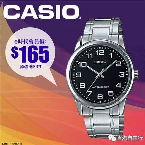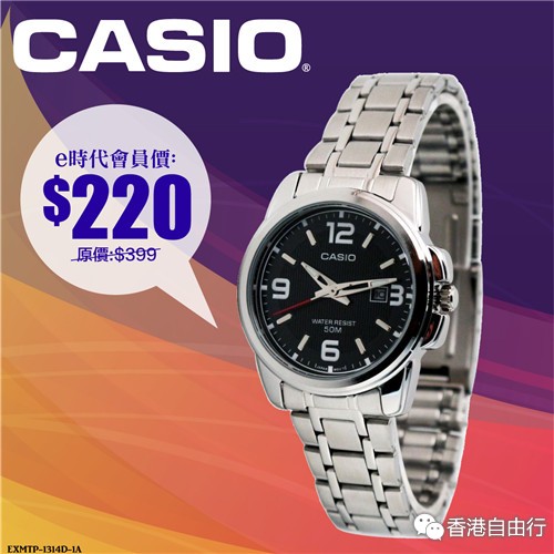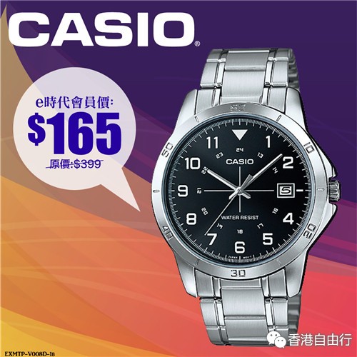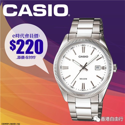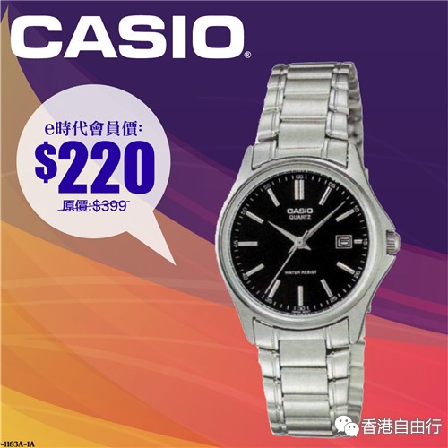 2016-03-01 微信红包微币天天送,关注微信号: hkziyouxing (长按左边红色字复制)获取福利和最新香港购物优惠折扣信息CASIO推出简约指针式系列表款,简单干净的表盘设计,清楚的数字时刻搭配撞色表盘设计,只售HK$165。卡西欧的手表,不论钢带或皮带手表都兼具设计感,戴上它们出席各种场合都十分适合,赶快来选购吧!