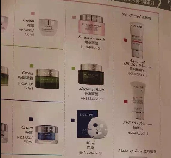 香港晒货:必须收藏!3月3日在港实拍兰蔻专柜所有产品价格海报