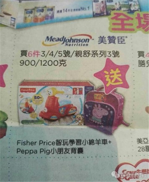 美赞臣送的玩具是书包和绵阳车。
