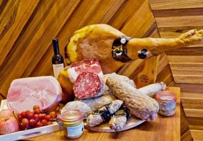 炸香脆温泉蛋配椰菜花泡沫、西班牙火腿及三文鱼籽
