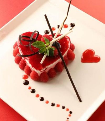 The Heart of Dessert, Raspberry and Vanilla(红桑子云呢拿甜品味道清新怡人,心型的设计让食客完全感受到情人节的甜蜜气氛,正好为这场法式盛宴划上完美句号)