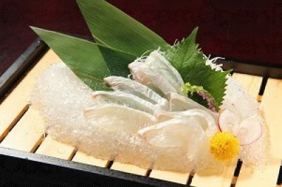 看到透光质感已叫人垂涎的平目鱼薄切,鲜甜爽口。