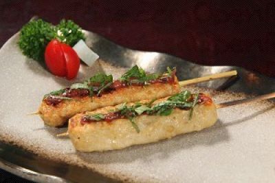 梅子大叶鸡肉软骨棒中的梅子酱起开胃作用,混入鸡软骨的鸡肉更添爽脆口感。